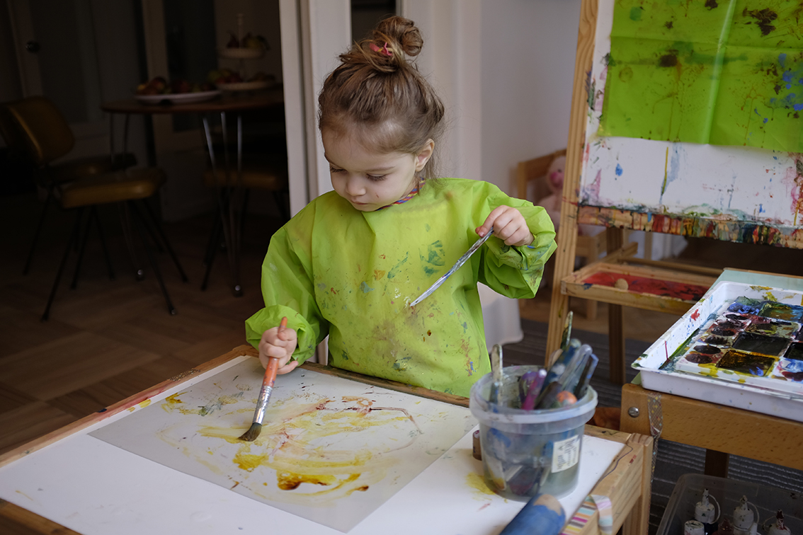 Child Printmaking Monoprinting Plexiglass MÅLA Easel Long Sleeve Apron